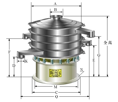 DZ系列旋振篩一般結(jié)構(gòu)圖: